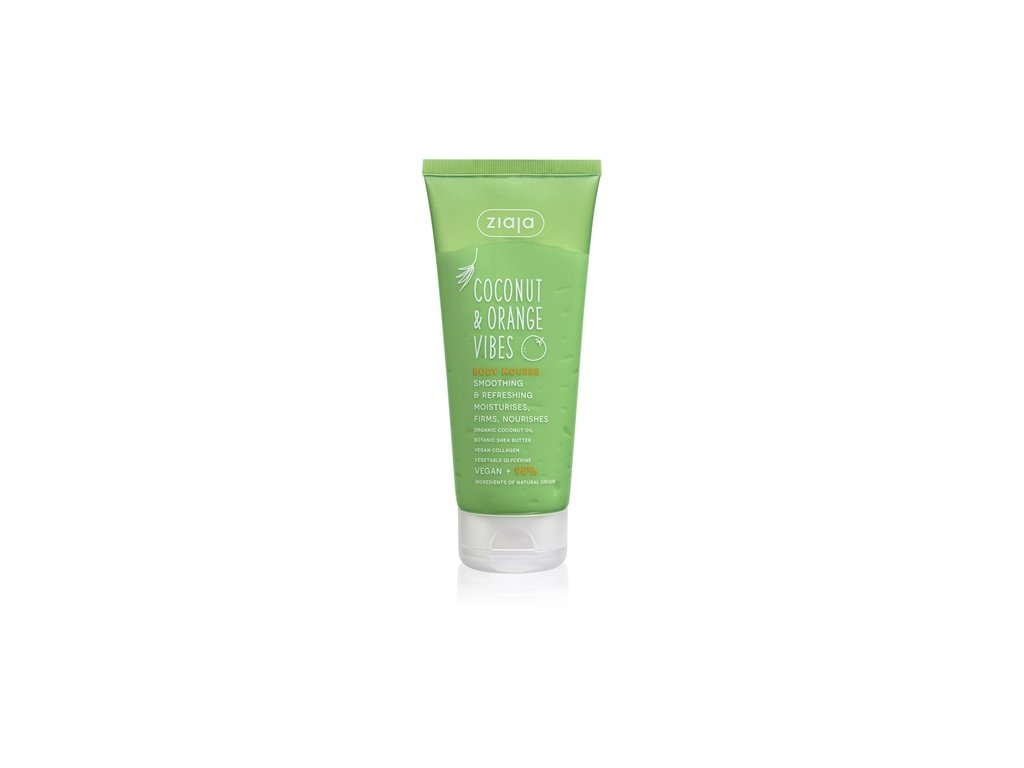 Vyhlazující a hydratační tělová pěna krémové, lehké konzistence. Má jemnou vůni kokosu.