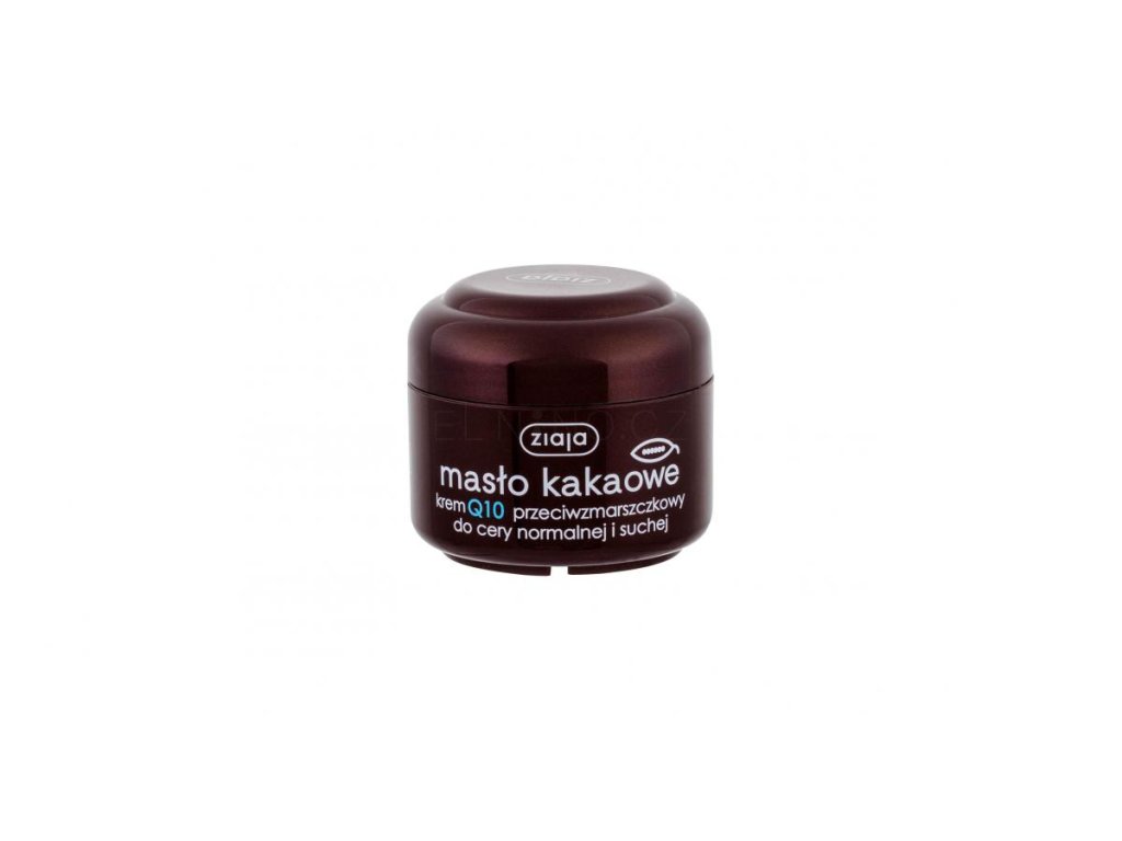 Pleťový krém Q10 s kakaovým máslem proti vráskám pro normální a suchou pleť. Kakaové máslo je výtažek stromu Theobroma - kakaovníku, obsahuje antioxidanty, minerální sole, mastné kyseliny. Zabraňuje nadměrnému vysušování pokožky a zlepšuje zbarvení pleti. Dodává pokožce hodnotné živiny. Krém posiluje kolagenová a elastinová vlákna, redukuje vrásky a zabraňuje vzniku nových. Zpomaluje proces stárnutí pokožky.